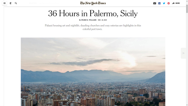 Ancora una ribalta sulla grande stampa internazionale per Palermo e per la sua ritrovata attrattività turistica. A dedicare un servizio alla città è questa volta il New York Times, che nella sua edizione online del 18 dicembre ha pubblicato un articolo della giornalista Ingrid K. Williams che descrive un suo fine settimana nel capoluogo. Dal Capo ai Quattro Canti, dal Porto al Teatro Massimo, dal Foro Italico alla Galleria di Arte Moderna, dalla Cattedrale alla Cappella Palatina e Villa Bonanno, passando ovviamente per la descrizione di tante pietanze tipiche di diversi locali cittadini, l’articolo descrive le principali attrazioni turistiche, culturali e culinarie della città, sottolineandone il percorso di rinascita. Esemplare quanto scritto a proposito del Teatro Massimo: “dopo un decennio di decadenza, dovuto a problemi di bilancio e problemi di corruzione, il più grande teatro lirico d’Italia sta ricostruendo la sua reputazione, grazie agli spettacoli prodotti”. Nell’articolo è più volte sottolineata la ricchezza culturale della città, fatta di unione fra stili, culture ed epoche diverse, simboleggiata dalla Galleria di Arte Moderna, ospitata in un complesso di strutture che datano fin dal XV secolo. “Ancora una volta – afferma il sindaco Leoluca Orlando – dopo il Financial Times e Swide, una grande testata internazionale dedica attenzione a Palermo e alla sua rinnovata capacità di essere città accogliente per i turisti. Non poteva esserci conclusione migliore per un anno che ha visto una grande ripresa dei flussi turistici verso la nostra città, con l’exploit dell’aeroporto Falcone-Borsellino e del Porto che hanno accolto migliaia e migliaia di turisti anche da nuove ed importanti rotte internazionali”.