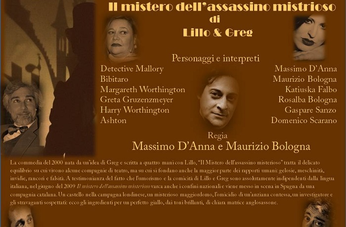 E’ ormai tutto pronto per il debutto de “Il Mistero dell’Assassino Misterioso” che andrà in scena al Teatro Finocchiaro di Palermo venerdì 19 e sabato 20 febbraio. Il lavoro rivisto dalla regia di Maurizio Bologna e Massimo D’Anna si rifà alla commedia in unico atto del 2000 nata da un’idea di Greg e scritta a quattro mani con Lillo.