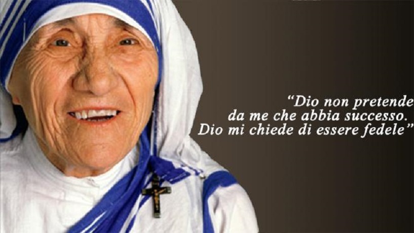 Madre Teresa nasce a Skopje in Albania il 26 agosto del 1910. Il suo vero nome è Agnes Gonxha Bojaxhiu. Fu grande amica di Papa Giovanni Paolo II. Le missionarie aprirono in Vaticano una mensa per i poveri, proprio su richiesta del Papa. Il 5 settembre del 1997 morì a Calcutta. A Madre Teresa furono concessi funerali di Stato, accorsero un milione di persone e autorità di tutto il mondo, la cerimonia fu trasmessa in mondovisione. Nel 2003 Giovanni Paolo II l’ha proclamata Beata, oggi Papa Francesco l’ha santificata.