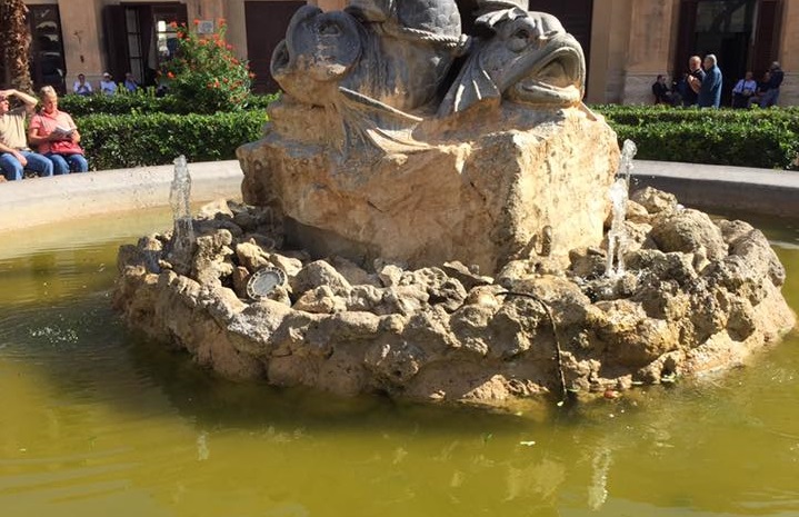 Un pessimo spettacolo per i turisti che arrivano a Monreale e che assistono ad uno spettacolo poco edificante di un monumento lasciato un po’ al degrado. La fontana, realizzata da Mario Rutelli, scultore palermitano molto attivo anche nel comprensorio monrealese e celebre per la sua fontana delle Neiadi in piazza Esedrea a Roma, al momento non gode di ottima salute. L’assessore Santo D’Alcamo ha fatto sapere di aver già preso accordi con gli uffici dell’acquedotto: “Mi hanno detto che per venerdì è già in programma l’intervento”.