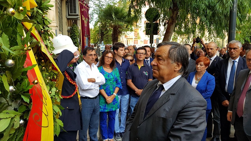 Alla cerimonia di questa mattina erano presenti, tra gli altri, anche il presidente del Senato Pietro Grasso, il prefetto di Palermo, Antonella De Miro, il vice sindaco Sergio Marino e l’assessore alle Attività Produttive, Giovanna Marano. Dopo la commemorazione il sindaco Orlando, insieme al presidente del Senato Pietro Grasso e al prefetto Antonella De Miro, si è recato presso il bar Aurora, in via Buonriposo, dove si è tenuta una colazione di consumo critico e solidarietà al titolare che ha denunciato il pizzo.