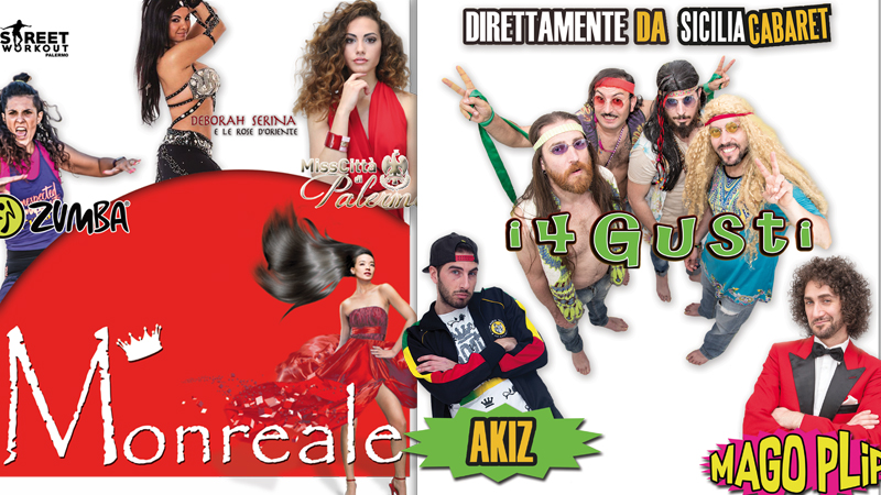La manifestazione avrà il suo culmine a partire dalle 20,30 nella splendida piazza Guglielmo II, dove si celebrerà la finalissima di “Miss Monreale 2017”. Una serata, allietata anche da artisti provenienti direttamente da Sicilia Cabaret come: I 4 Gusti, gruppo di cabaret palermitano formato da Danilo Lo Cicero, Giuseppe Stancampiano, Domenico Fazion e Totò Ferraro; Mago Plip, al secolo Davide Tusa, presente nel 2010 alla quarta edizione di Made in Sud, in onda su Comedy Central, attualmente parte integrante del programma di cabaret più noto in Sicilia, Convento Cabaret su Tgs, capitanato dal duo comico Matranga e Minafò; e Alessandro Di Paola, in arte Aziz. Impreziosiranno il parterre di ospiti il rapper Mak, che offrirà un’esibizione live, e la danzatrice Deborah Serina con “Le Rose d’Oriente”.