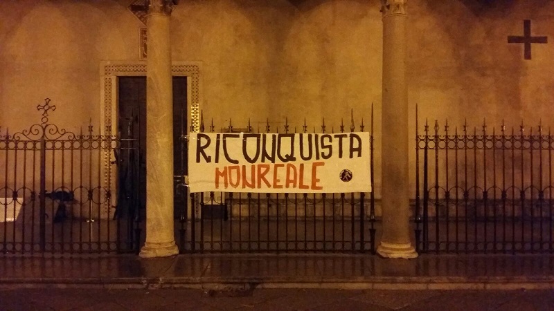 Continuano ad essere affissi manifesti e scritte in città che incitano ad una “riconquista di Monreale” da parte di ignoti. Questa volta la segnalazione arriva dal Collettivo Arci Link. Un manifesto è apparso la scorsa notte sulla recinzione della Cattedrale, dunque in pieno centro, come sempre nessuno ha notato o sentito nulla. “Gli eredi di Guglielmo – h detto Toni Renda del Collettivo – vogliono riconquistare Monreale? Saranno americani? Oppure saranno le maestranze arabe che contribuirono a costruire la cattedrale? Appaiono strane scritte incomprensibili a chi possiede un po’ di intelletto sulle cancellate del simbolo di Guglielmo il buono, sul simbolo del groviglio delle culture. Chi sarà mai? E soprattutto cosa vorranno dire? Cosa vorranno dai monrealesi? Forse un amante tradito, o forse più probabilmente un amante respinto, sicuramente uno stalker”.