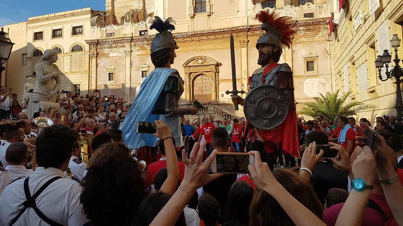 ore 18,30 – “Il carro di Santa Rosalia dei bambini”, per il cosiddetto “Festinello”, partirà dalla Cattedrale di Palermo, attraverserà via Maqueda e raggiungerà Piazza Monte di Pietà. A bordo del piccolo carro ci sono le piccole Rosalia – Giulia, Marta, Anita e Rita – che rappresenteranno i quattro mandamenti: Palazzo Reale, Monte di Pietà, Castellammare, Tribunali. Sul carro saliranno altre quattro piccole Rosalia – Yanishta, Joey, Mariloise e Karen – in rappresentanza delle comunità straniere residenti in città: Mauritius, Bangladesh, Filippine, Ghana. Il carro, che avrà a prua l’immagine della Santa Patrona e sarà trainato dagli attori della compagnia dei detenuti, ha una grande valenza simbolica e proprio per questo la direzione artistica ha deciso che sfilerà anche la sera del 14 come apripista del carro principale, considerato che l’edizione di quest’anno ha come tema “Palermo bambina”. La sfilata del carro sarà accompagnata nel suo tragitto dalla “Kids Orchestra Band” del Teatro Massimo diretta dal maestro Michele De Luca e da numerosi bambini fra cui quelli della associazione “Parco del Sole” dell’Albergheria.