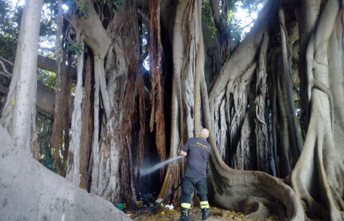 Serviranno delle verifiche approfondite per stabilire i danniche ha subìto lo storico e secolare ficus che si trova all’intero di villa Garibaldi in piazza Marina a Palermo. Ieri, intorno alle 17,30, alcuni vandali hanno dato fuoco a dei rifiuti che erano stati gettati tra le radici dell’albero. L’incendio è divampato durante l’orario di apertura di villa Garibaldi e i primi a intervenire sono stati alcuni abitanti che con mezzi di fortuna hanno tentato di domare le fiamme fino all’arrivo dei pompieri. Il Comune di Palermo, sul marciapiede antistante la storica recinzione ha posto una transennamento provvisorio, poiché le radici del ficus sporgono oltre la recinzione del giardino. Ma l’area transennata versa in condizioni di degrado ed è diventata luogo di accumulo di sporcizia e rifiuti.