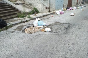 Agosto all’insegna della pioggia, il maltempo continua ad abbattersi su tutta la provincia. Disagi e allagamenti si sono registrati in tutto il territorio. In via Barone Manfredi la pioggia oltre a trascinare via diversi sacchetti di rifiuti depositandoli per strada, ha anche aperto un buco nell’asfalto. Un buco che visto da fuori sembra poca cosa, ma che potrebbe trasformarsi in una vera e propria voragine. La buca è infatti profonda circa un metro e mezzo. L’acqua scorrendo ha praticamente svuotato e portato via la terra sotto l’asfalto. L’assessore Giuseppe Cangemi informato della situazione, ha assicurato che gli operai interverranno nel più breve tempo possibile per evitare pericoli agli automobilisti e ai pedoni che transitano in zona.