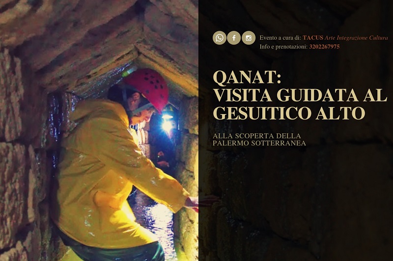 Una visita guidata al Qanat arabo – persiano del “Gesuitico Alto” al Fondo Micciulla, proposta e organizzata da TACUS Arte Integrazione Cultura in collaborazione con il CAI Palermo, in programma venerdì 12 aprile. Accompagnati dalle guide speleologiche del CAI, i visitatori potranno percorrere parte del cunicolo sotterraneo – immerso nell’acqua ad un’altezza costante di 60 centimetri circa – dell’imponente opera di ingegneria idraulica costruita al di sotto della città, uno dei siti più affascinanti e interessanti della Palermo sotterranea, e scoprirne storia e funzionamento: dalla conformazione delle falde del terreno e la morfologia friabile della roccia, alle tecniche di costruzione eseguite dai “muqanni”.