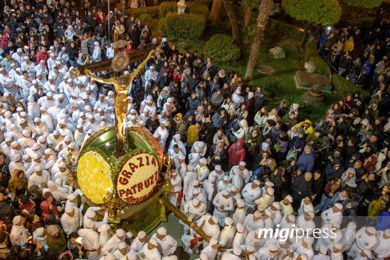 “In 394 anni, non era mai accaduto nulla di simile – prosegue Intravaia – Il popolo monrealese, fedele al suo Crocifisso, costretto a rimanerne fisicamente distante. Una peste aveva portato il simulacro in strada per chiedere la liberazione, un’altra peste, tutta moderna, ci costringe a tenerlo sull’altare e in una Collegiata vuota, per il bene di tutti. Ma come spesso succede è nell’assenza che sperimentiamo la mancanza, come sanno bene i tanti concittadini che vivono fuori e fremono per tornare a case durante i giorni della festa”.