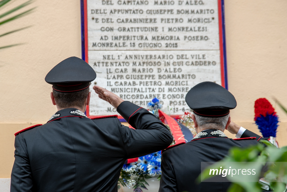 Oggi cerimonia velocissima, intima e riservata. Ma fortemente voluta dall’Arma dei carabinieri che ha voluto rendere omaggio ad un suo eroe caduto nell’adempimento del proprio dovere. Prima la cerimonia a Palermo, sul luogo dell’attentato, poi a Monreale, davanti la caserma della polizia municipale che un tenpo era la caserma dei carabinieri. A presiedere la benedizione, l’arcivescovo di Monreale Michele Pennisi. Erano presenti, tra gli altri, il comandante della legione carabinieri Sicilia generale di brigata Giovanni Cataldo; il comandante provinciale dei carabinieri di Palermo colonnello Arturo Guarino; il comandante del gruppo carabinieri di Monreale tenente colonnello Luigi De Simone; il comandante della compagnia dei Carabinieri di Monreale capitano Andrea Quattrocchi; il comandante della stazione carabinieri di Monreale maresciallo Andrea La Rocca; il sindaco di Monreale Alberto Arcidiacono, insieme al presidente del consiglio comunale Marco Intravaia, agli assessori Luigi D’Eliseo, Ignazio Davì, Geppino Pupella e Nicolò Taibi, il portavoce di Più Europa Sicilia Manuela Quadrante e il presidente dell’associazione anti racket monrealese Liberi di Lavorare Biagio Cigno.