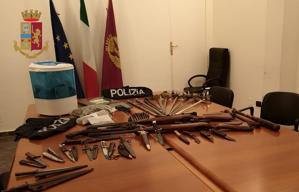 Un uomo di 54 anni, Daniele Castellana Marchello, è stato arrestato dalla polizia di Palermo per detenzione illegale di armi, produzione, traffico e detenzione di sostanza stupefacente e furto aggravato di energia elettrica. Durante un controllo nell’abitazione dell’uomo, personale della Digos ha rivenuto diverse armi bianche, baionette, pugnali, sciabole, una pistola a tamburo molto antica, 2 carabine ad aria compressa e 10 munizioni da guerra calibro 7.62 detenute senza alcun titolo. Nel magazzino adiacente alla casa, inoltre, gli agenti hanno trovato 700 grammi di marijuana e in un’area attigua una coltivazione di droga, con tanto di sistema di illuminazione artificiale e di aerazione.