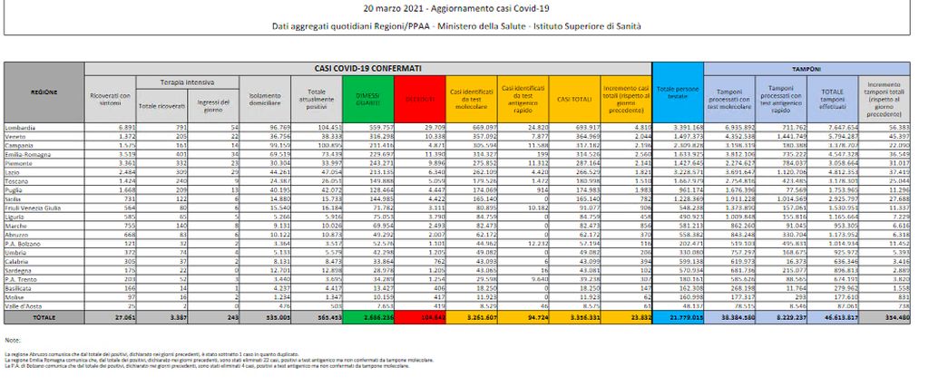 La regione con il maggior numero di nuovi casi nelle ultime 24 ore è la Lombardia (4.810), seguita dall’Emilia-Romagna (2.560), Campania (2.196), Piemonte (2.141), Veneto (2.044) e Lazio (1.821).