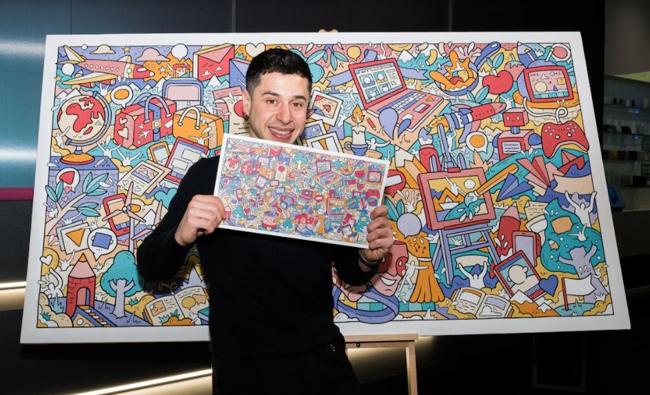 Fra! ha presentato live uno dei suoi celebri doodle: una maxi tela di 2 x 1.20 mt che potrà essere personalizzata e colorata da ogni cliente che acquisterà il nuovo glo hyper+ UNIQ anche nelle settimane successive. La community glo diventa così co-creatore dell’opera, potendo contribuire alla sua realizzazione con il proprio gusto e il proprio stile.