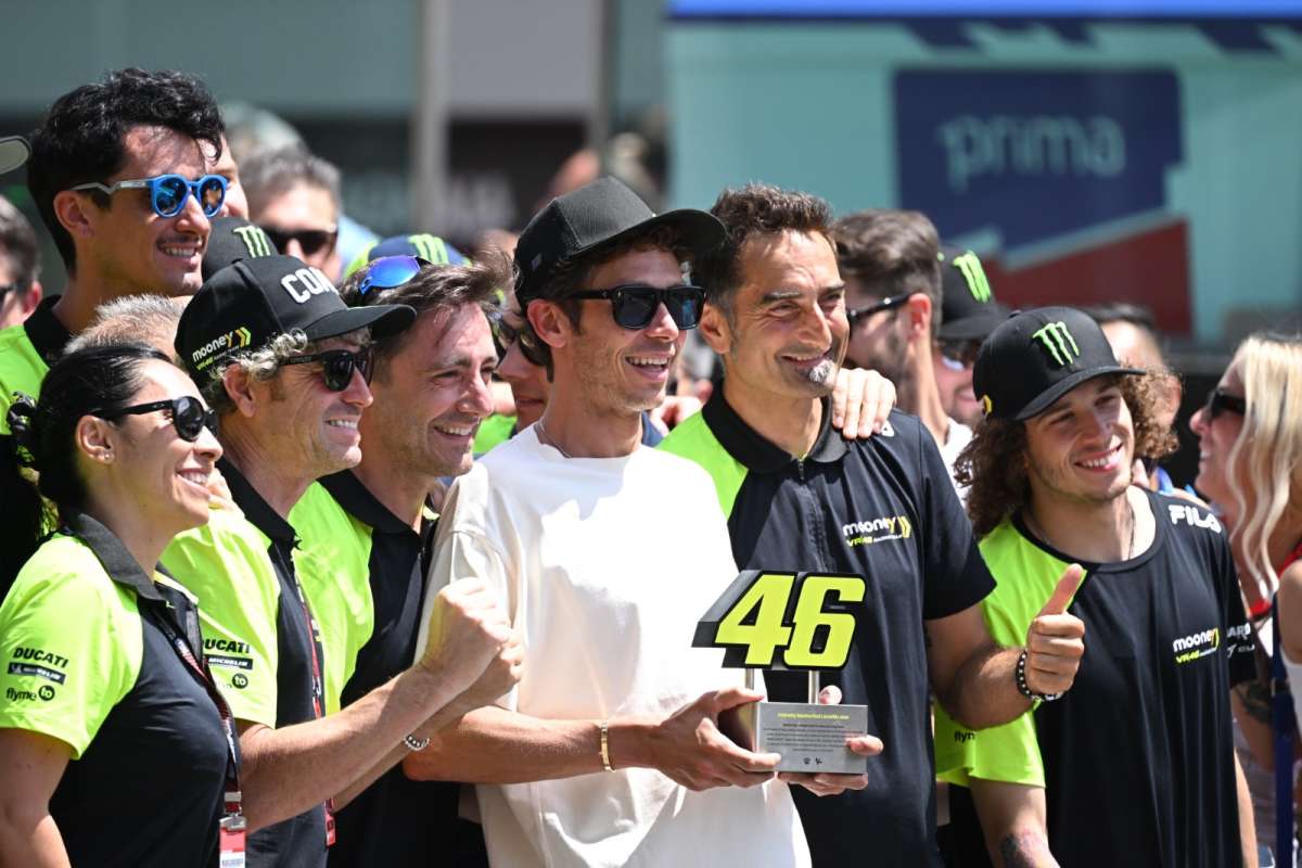FIRENZE (ITALPRESS) – Ritirato il numero 46 di Valentino Rossi. La cerimonia si è svolta sul rettilineo di partenza del circuito del Mugello a Scarperia, nel sabato delle qualifiche del Gp d’Italia. Presenti, oltre all’ex campione pesarese, l’amministratore delegato della Dorna, Carmelo Ezpeleta, ed il presidente della Federazione internazionale di motociclismo, Jorge Viegas. Al ‘Dottorè è stata consegnata una targa con il numero 46 che ha sempre contraddistinto la sua carriera nel mondo del motociclismo. Rossi è stato acclamato da tutto il pubblico presente intorno al circuito del Mugello, in particolare dai sostenitori del fan club a lui intitolato. Visibilmente commosso, ha mostrato la targa verso i tifosi, salutando e concedendosi a qualche selfie con i tanti che erano ad attenderlo anche in zona box e pit lane. “Grazie per il meraviglioso supporto, il tifo e le emozioni di questi anni – ha dichiarato Valentino Rossi a margine della cerimonia – Il pubblico del Mugello è sempre stato emozionante, ieri sera parlavamo con i nostri amici e dicevo loro che il primo giro della domenica mattina durante il warm up è una delle emozioni più grandi per un pilota di moto, quindi grazie. E’ stato bello farlo qui, peccato, potevamo correre altri quattro anni, ma mi fanno male la schiena e le ginocchia e da lì ho capito che ero vecchio”.