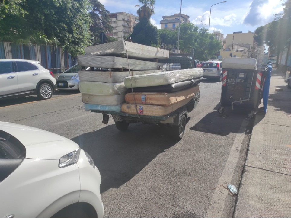 Un cittadino palermitano, L.N.E., di 34 anni è stato multato dalla polizia municipale per deposito abusivo di materiale ingombrante in un cassonetto di via Evangelista di Blasi. L’uomo è stato sorpreso dagli agenti del Nucleo Tutela e Decoro in servizio per il consueto pattugliamento per il contrasto dell’abbandono dei rifiuti, mentre dalla sua motoape era intento a scaricare otto materassi, due cuscini in ecopelle e tre sommier. Dai controlli degli agenti, il trasgressore è risultato sprovvisto di patente di guida, mai conseguita, e che il mezzo si trovava già sotto sequestro e privo di copertura assicurativa e revisione. Per lui, quindi, è scattato nuovamente il sequestro della moto ape e un verbale di 8.296 euro, di cui euro 5.100 per guida senza patente, euro 866 per guida senza assicurazione, euro 346 per mancata revisione del mezzo e, infine, euro 1.984 perché guidava un veicolo già sottoposto a sequestro.