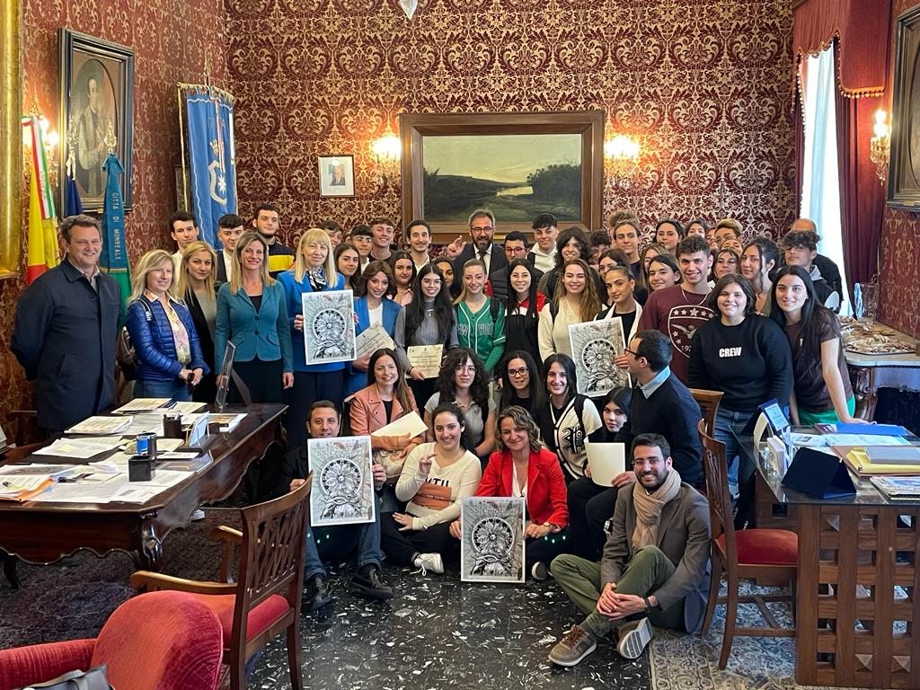 Si è tenuta questa mattina in Sala Rossa la cerimonia di consegna degli attestati agli studenti del liceo artistico “Mario D’Aleo” che hanno partecipato al concorso per la realizzazione manifesto della 397esima Festa del Santissimo Crocifisso di Monreale (LEGGI QUI IL PROGRAMMA).