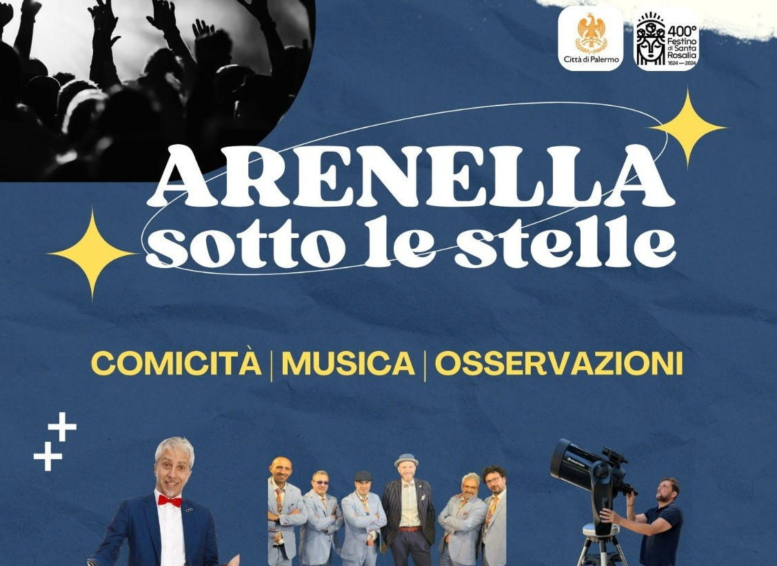 Una serata di divertimento, cabaret, musica e osservazioni astronomiche sotto le stelle dell’Arenella di Palermo. L’appuntamento, ideato e organizzato dall’associazione Urania con l’obiettivo di valorizzare le borgate marinare e le piazze dei quartieri periferici di Palermo, si svolge sabato 7 settembre, a partire dalle 21 e vede susseguirsi sul palco di piazza Tonnara vari momenti di intrattenimento.