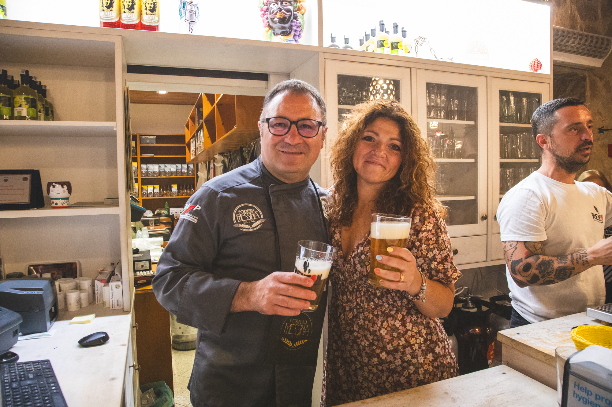 La storia della Forneria Messina inizia nel 1980, quando Pietro Messina, papà di Gianmichele, decise di riaccendere il vecchio forno a legno, dove la mamma spesso faceva il pane. Gianmichele era appena un bambino, ma fu subito affascinato da questo mondo dell’arte bianca. “Ricordo che quei mesi estivi furono come una grande festa perché il profumo del pane appena sfornato attirava tantissima gente che veniva a San Martino per le vacanze estive – racconta Gianmichele – Io, con la mia bicicletta, cominciai a fare le consegne presso la varie villette della frazione”. Pane prima, certo. E poi, quando Pietro decise di investire sull’attività, con un forno più grande, arrivò anche la produzione di pizze, sfincioni e biscotti. E poco dopo anche un piccolo banco con i prodotti caseari. Galeotto fu il viaggio di nozze in California, nel 2000, con la neo-moglie Elena. “Tornammo con tante idee e progetti”, racconta Gianmichele. La prima fu quella di trasformare in enoteca il piccolo locale adiacente al panificio. Gli anni passavano. L’enoteca aveva sempre un maggiore successo. Così come la produzione gastronomica del locale monrealese. La Forneria divenne punto di riferimento per il pane “cunzatu”.
