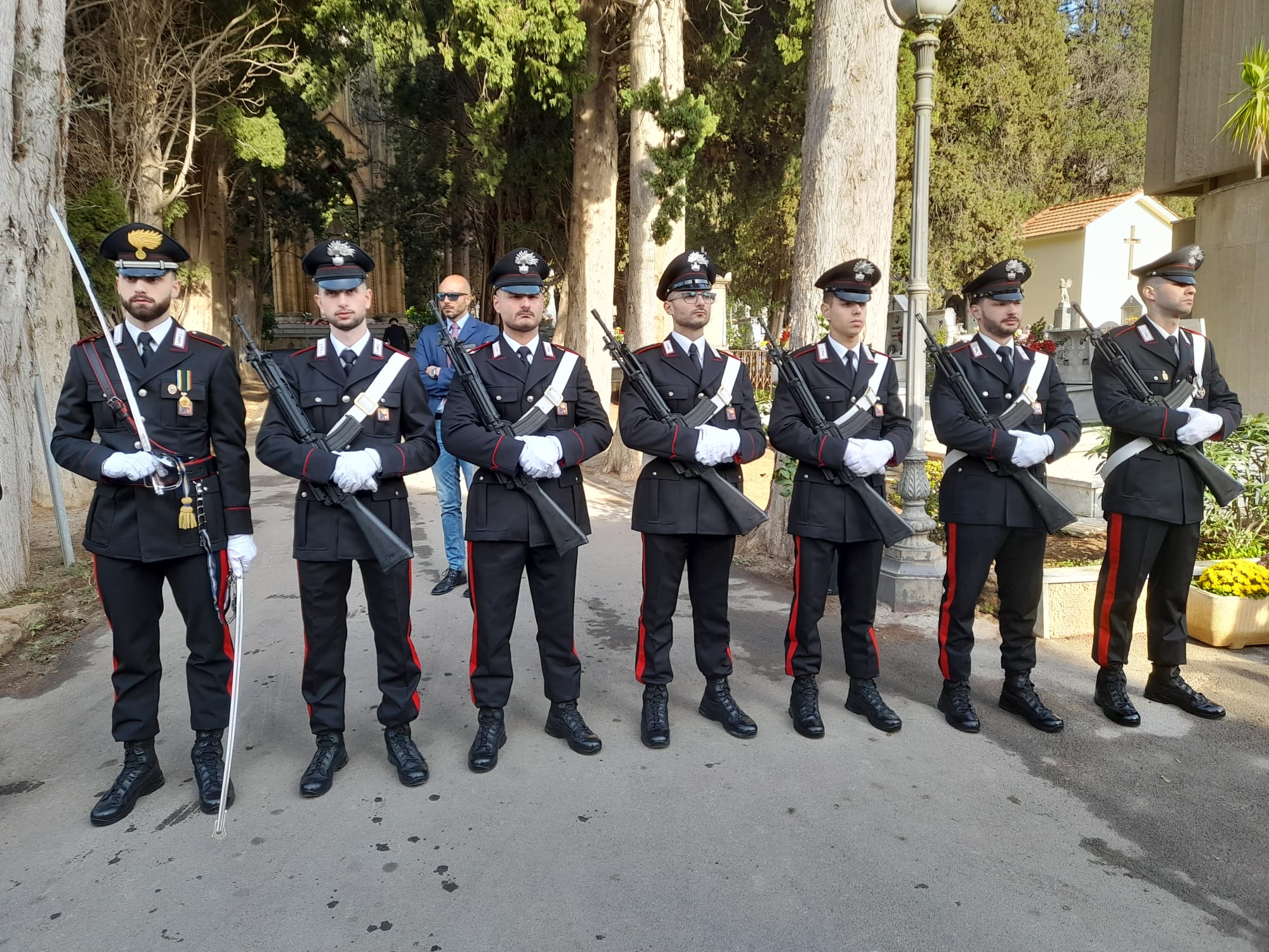 Questa mattina nel cimitero di Monreale, i carabinieri hanno commemorato il sacrificio del vicebrigadiere Intravaia, decorato con la “Croce d’Onore alle vittime di atti di terrorismo o di atti ostili impegnate in operazioni militari e civili all’estero alla “memoria” e con la “Medaglia d’Oro di vittima del Terrorismo”. Il comandante della Legione Carabinieri Sicilia, Generale di Divisione Giuseppe Spina e il sindaco di Monreale, Alberto Arcidiacono, accompagnati dal figlio del Marco, presidente del Consiglio comunale di Monreale e da altri familiari, hanno deposto due cuscini di fiori sulla tomba monumentale dell’Eroe. Alla cerimonia hanno preso parte anche il comandante provinciale dei carabinieri di Palermo, Generale di Brigata Luciano Magrini, il comandante del Gruppo di Monreale, tenente colonnello Giulio Modesti e una rappresentanza della sezione di Monreale dell’Associazione Nazionale Carabinieri.