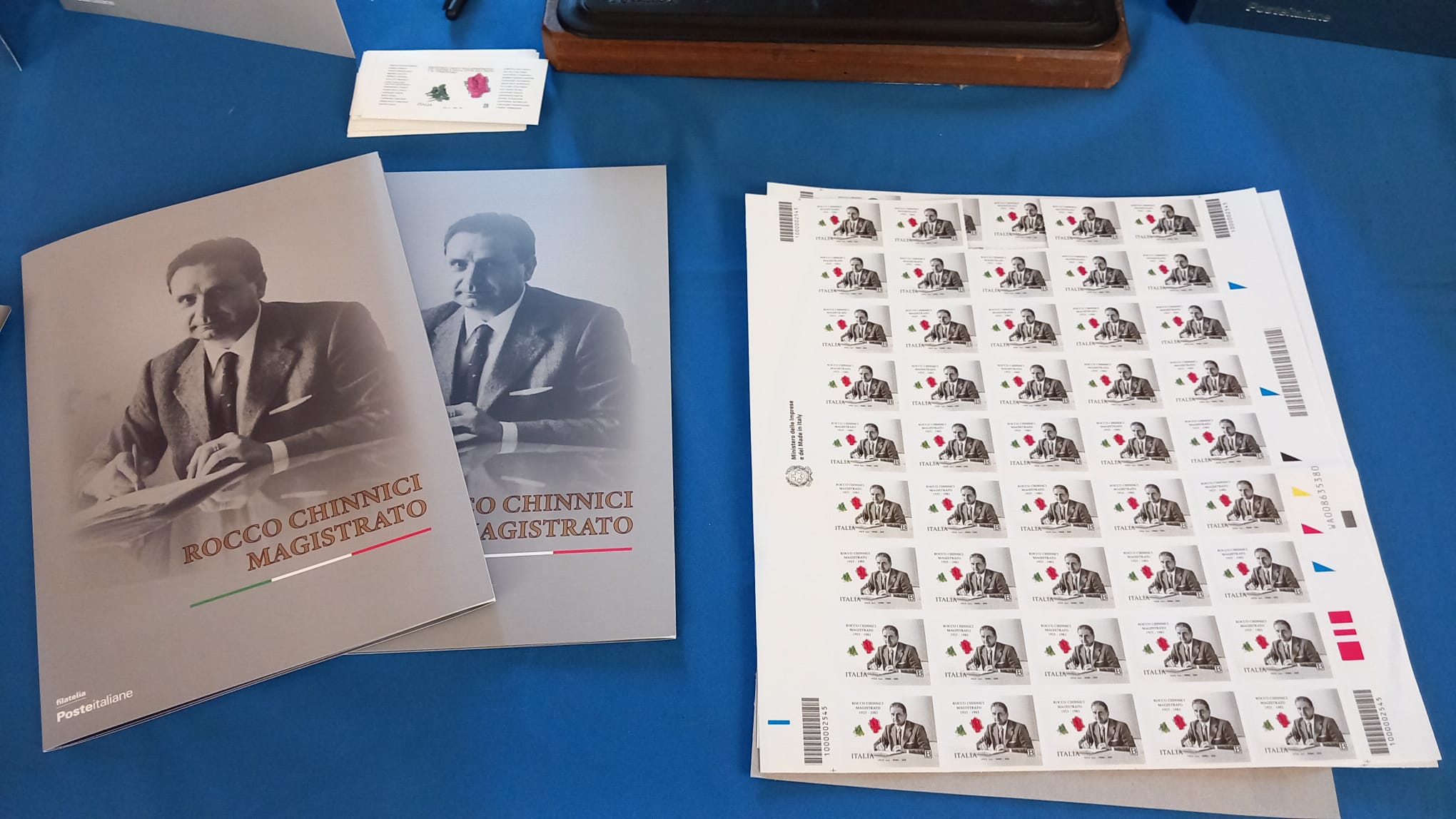 Completano il francobollo le legende “Rocco Chinnici”, “Magistrato”, le date “1925 – 1983”, la scritta “Italia” e l’indicazione tariffaria “B”. L’annullo primo giorno di emissione presso l’ufficio postale di Palermo centro. Il francobollo e i prodotti filatelici correlati, cartoline, tessere e bollettini illustrativi saranno disponibili presso gli Uffici Postali con sportello filatelico, gli “Spazio Filatelia” di Firenze, Genova, Milano, Napoli, Roma, Roma 1, Torino, Trieste, Venezia, Verona e sul sito www.poste.it. Realizzata anche una cartella filatelica contenente un francobollo, la quartina di francobolli, la cartolina affrancata ed annullata, la busta primo giorno e il bollettino illustrativo (al prezzo di 2 euro).