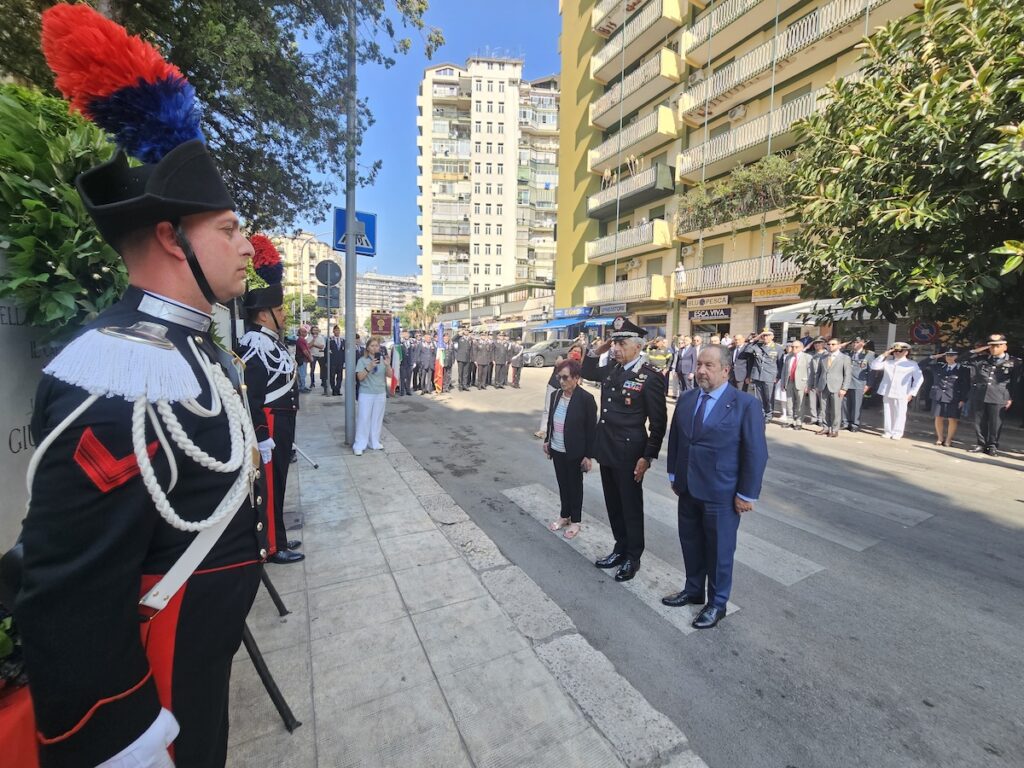 Alle ore 9:30, nel luogo dell’attentato, è stata deposta una corona d’alloro ai piedi della targa commemorativa. Presenti alla cerimonia il Generale di Divisione Giuseppe Spina, Comandante della Legione Carabinieri “Sicilia”, il Prefetto di Palermo Massimo Mariani, numerose autorità civili e militari, rappresentanze dell’Associazione Nazionale Carabinieri, oltre ai familiari delle vittime. Il Cappellano Militare Don Salvatore Falzone ha guidato un momento di raccoglimento spirituale, con una preghiera e la benedizione della targa, nel ricordo di tre servitori dello Stato caduti per mano della mafia.