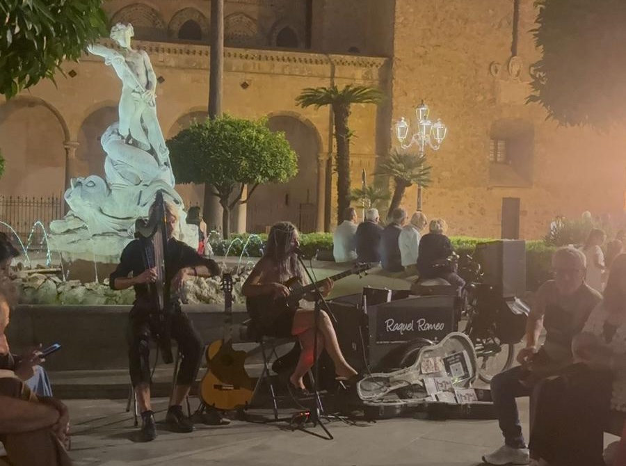 La rassegna si è aperta venerdì in via Benedetto D’Acquisto con il travolgente Maledeo Live Show, che ha dato il via ai festeggiamenti con musica dal vivo ed energia contagiosa, soprattutto tra i più giovani. Sabato sera, invece, è stata la volta della musica d’autore. Piazzetta Vaglica ha ospitato il suggestivo spettacolo della cantante Raquel Romeo, accompagnata all’arpa da Jakub Rizman. Il loro Live Exhibition, iniziato alle 21, ha regalato al pubblico un momento di raffinata emozione, culminato con una performance anche in piazza Vittorio Emanuele, che ha amplificato l’impatto scenico dell’evento. Questi appuntamenti rappresentano solo l’inizio di un cartellone estivo ricco e variegato, che, come annunciato dall’Assessorato allo Spettacolo, punta a valorizzare il patrimonio storico e artistico di Monreale, con eventi pensati per un pubblico eterogeneo, tra musica, arte, teatro e intrattenimento.