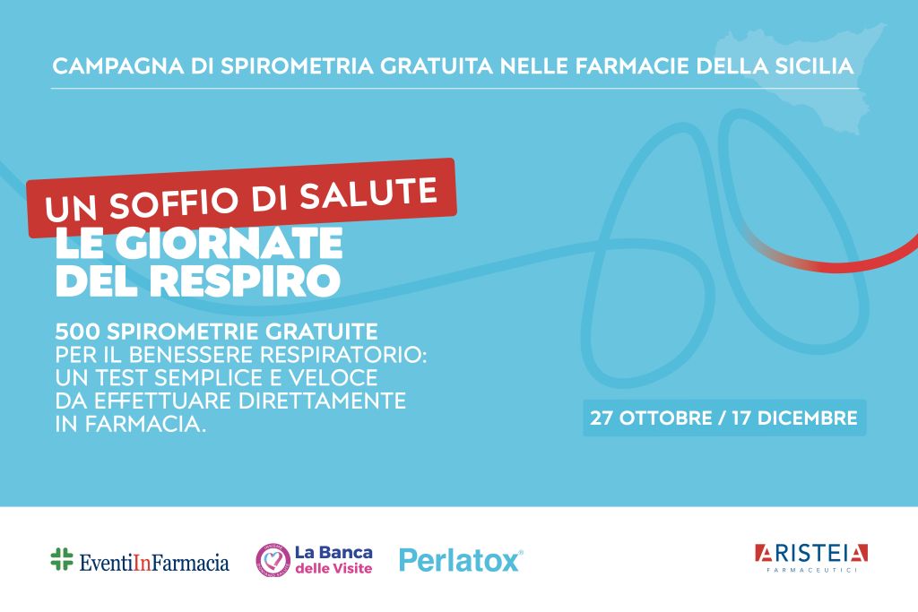ROMA (ITALPRESS) – Parte in Sicilia una grande iniziativa di prevenzione dedicata alla salute respiratoria: la Fondazione Banca delle Visite Ets, con il sostegno di Aristeia Farmaceutici (con il brand Perlatox) ed Eventi in Farmacia, lancia una campagna di screening gratuito della funzionalità polmonare attraverso test di spirometria, da effettuare direttamente in farmacia. L’iniziativa coinvolgerà una rete di farmacie siciliane per offrire ai cittadini un’occasione preziosa di diagnosi precoce delle malattie respiratorie.