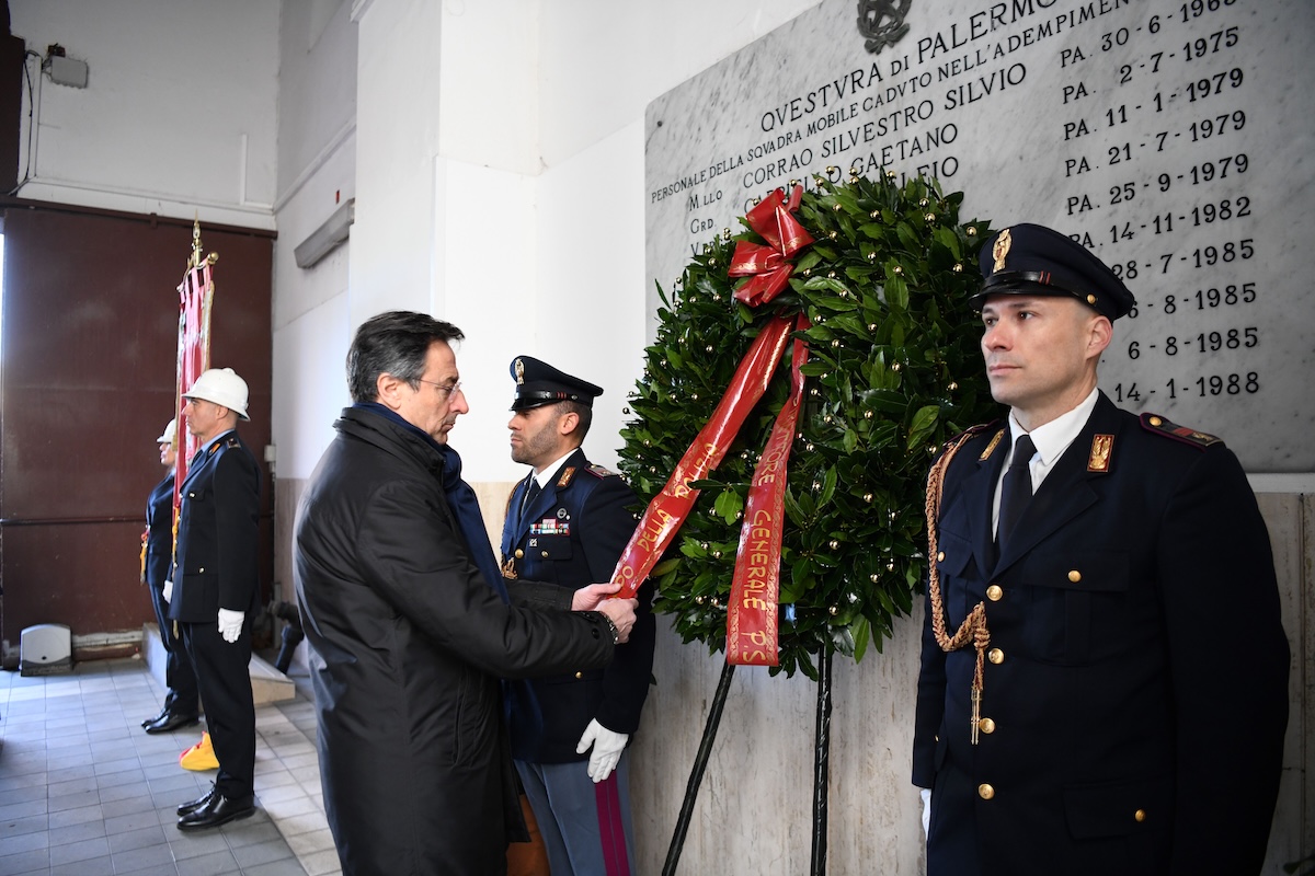 La Questura di Palermo ha ricordato questa mattina Natale Mondo, poliziotto ucciso dalla mafia il 14 gennaio 1988, davanti al negozio di giocattoli della moglie. Nel corso di una cerimonia solenne, alla presenza delle autorità civili e militari, il Questore della Provincia di Palermo ha deposto una corona d’alloro davanti alla lapide collocata nell’atrio della Squadra Mobile di Palermo, dove il nome di Natale Mondo è inciso insieme a quello di altri colleghi caduti per mano mafiosa.