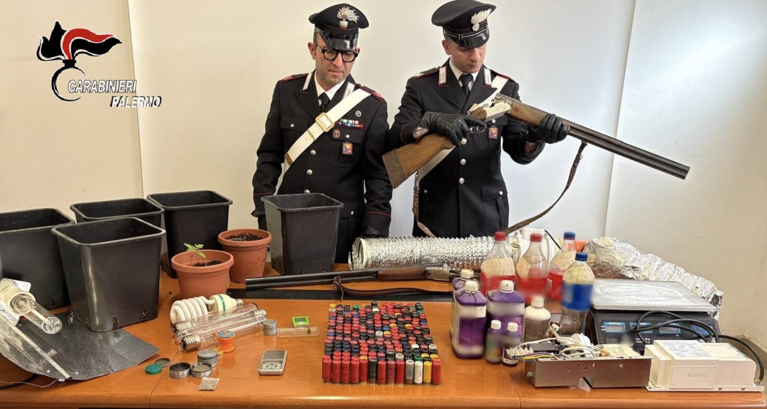 Durante la perquisizione sono inoltre emersi due fucili, detenuti illegalmente e nascosti sopra un armadio, oltre a 266 cartucce calibro 12 a pallini, occultate in un magazzino. Tutto il materiale rinvenuto è stato posto sotto sequestro. Il Giudice per le indagini preliminari del tribunale di Termini Imerese ha convalidato gli arresti, disponendo per i tre indagati l’obbligo di dimora nel comune di Misilmeri, la presentazione alla Polizia Giudiziaria e l’obbligo di permanenza notturna dalle 20 alle 7.