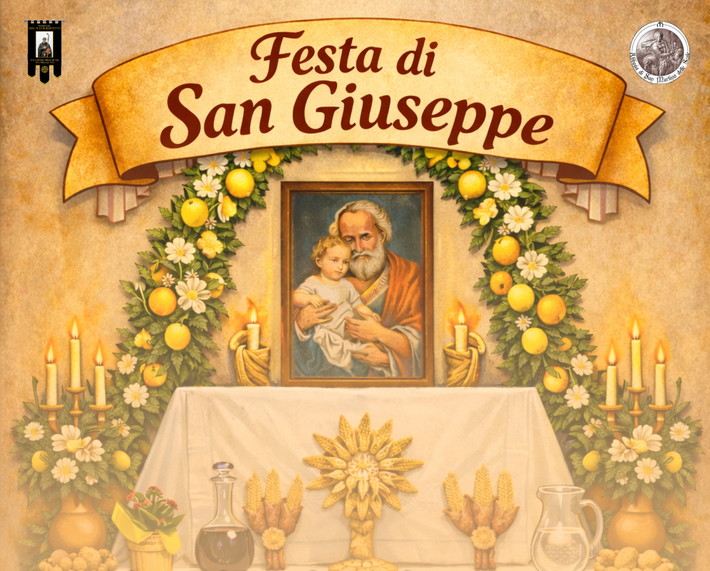 Particolarmente suggestiva sarà anche la Tavola di San Giuseppe, decorata con pani votivi, agrumi, fiori e altri alimenti simbolici. Un segno di devozione e di ringraziamento al Santo, ma anche un’occasione per rinnovare l’attenzione verso i più bisognosi. Proprio per questo, dal 17 al 19 marzo, i visitatori dell’altare sono invitati a portare beni di prima necessità da destinare alla Caritas, contribuendo così a mantenere vivo lo spirito solidale che da sempre accompagna questa festa.