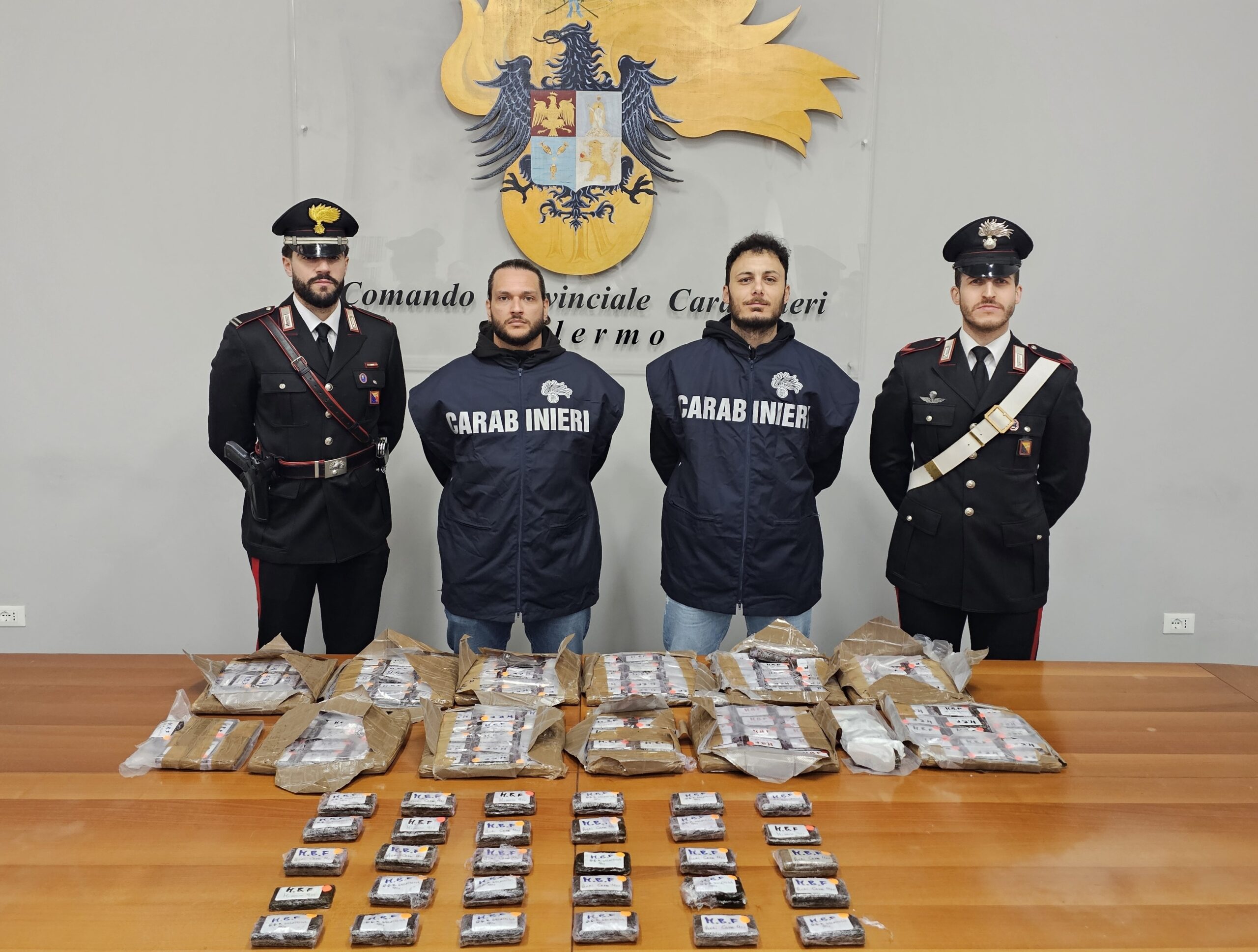 Nel primo intervento, avvenuto tra le vie dell’Orsa Minore e Villagrazia, i militari del Nucleo Operativo della Compagnia Piazza Verdi, con il supporto del Nucleo Radiomobile e delle unità cinofile, hanno fermato un’auto di grossa cilindrata con a bordo due uomini, padre e figlio, di origini calabresi ma residenti nel Nord Italia. L’atteggiamento sospetto dei due ha spinto i militari ad approfondire i controlli, scoprendo un ingegnoso sistema di occultamento: la carrozzeria del veicolo era stata modificata per creare una sorta di “cassaforte mobile”, con un vano segreto ricavato tra le lamiere. All’interno sono stati trovati 200 panetti di hashish per un peso complessivo di circa 20 chili. La droga, se immessa sul mercato, avrebbe potuto fruttare fino a 500 mila euro. Sequestrati anche 3.215 euro in contanti e un coltello a serramanico sporco di sostanza stupefacente. I due uomini sono stati arrestati con l’accusa di traffico e detenzione illecita di droga e denunciati anche per porto di oggetti atti ad offendere. Su disposizione dell’Autorità giudiziaria, sono stati trasferiti nel carcere “Pagliarelli” di Palermo. L’ARTICOLO CONTINUA DOPO IL VIDEO