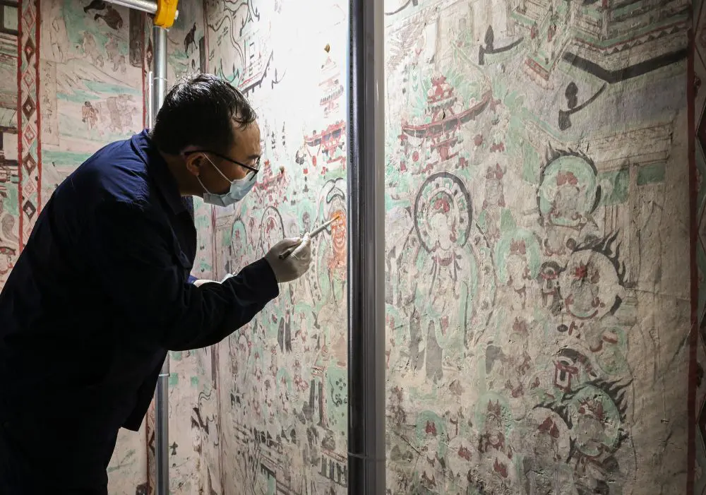 Le pitture murali delle grotte sono uno dei tesori più rappresentativi del patrimonio cinese delle pitture murali. Estese su circa 45.000 metri quadrati, riflettono oltre mille anni di scambi culturali e raffigurano una vasta gamma di soggetti, tra cui la vita quotidiana nell’antica Cina, paesaggi, architettura, musica e danza.