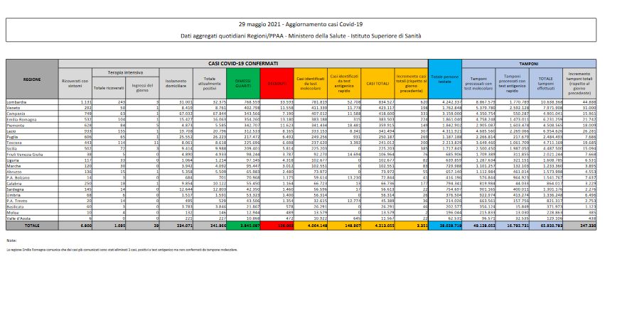 ROMA (ITALPRESS) – “Da metà giugno tutta l’Italia potrebbe essere colorata di bianco. E’ uno scenario che indubbiamente volge al bello. Però…la pandemia per definizione è globale e la sicurezza viene raggiunta solo se riguarda tutti, come hanno ribadito i capi di Stato al recente Health Global Summit. Siamo in una fase di transizione. Grazie […]