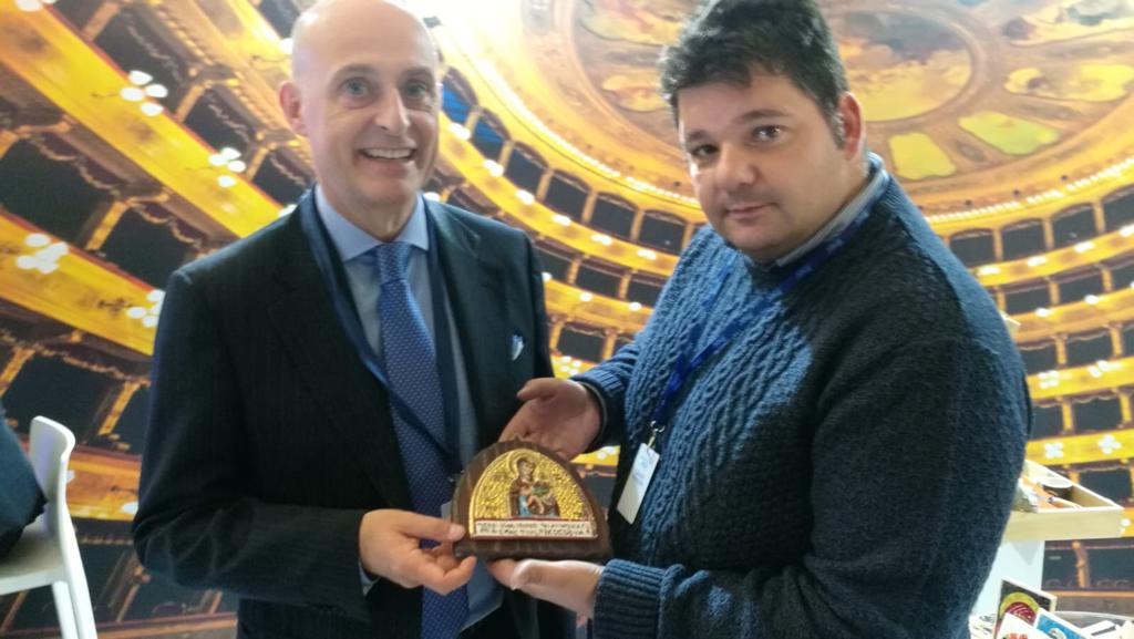 Il mosaicista monrealese Gaetano Ferraro ha donato un'immagine raffigurante i mosaici della città normanna