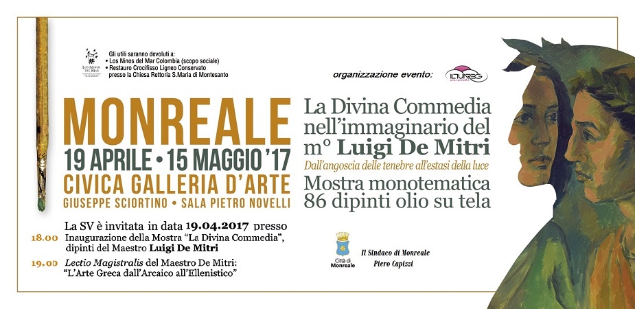 Gli appassionati di Dante e della Divina commedia hanno un motivo in più per visitare Monreale. Dal 19 aprile e fino al 15 maggio, alla Civica Galleria d’Arte Giuseppe Sciortino, nella Sala Novelli, sarà allestita la mostra del amestro Luigi De Mitri “La Divina Commedia nell’immaginario Luigi De Mitri – Dall’angoscia delle tenebre all’estasi della […]