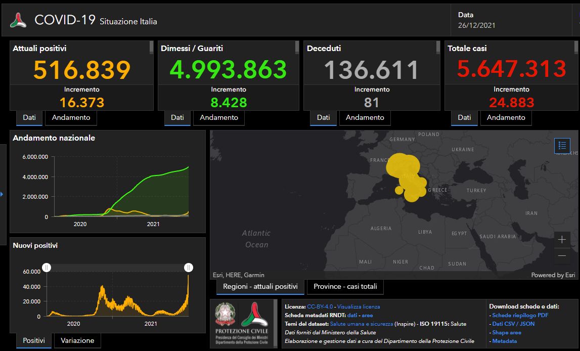 ROMA (ITALPRESS) – Secondo il bollettino del ministero della Salute, i nuovi positivi sono oggi 24.883, 81 i decessi. I dimessi/guariti sono 8.428 mentre per gli attualmente positivi si registra un incremento di 16.373 unità per un totale di 516.839. La Lombardia è la prima regione per numero di contagi (4.581), seguita da Lazio (3.665) […]