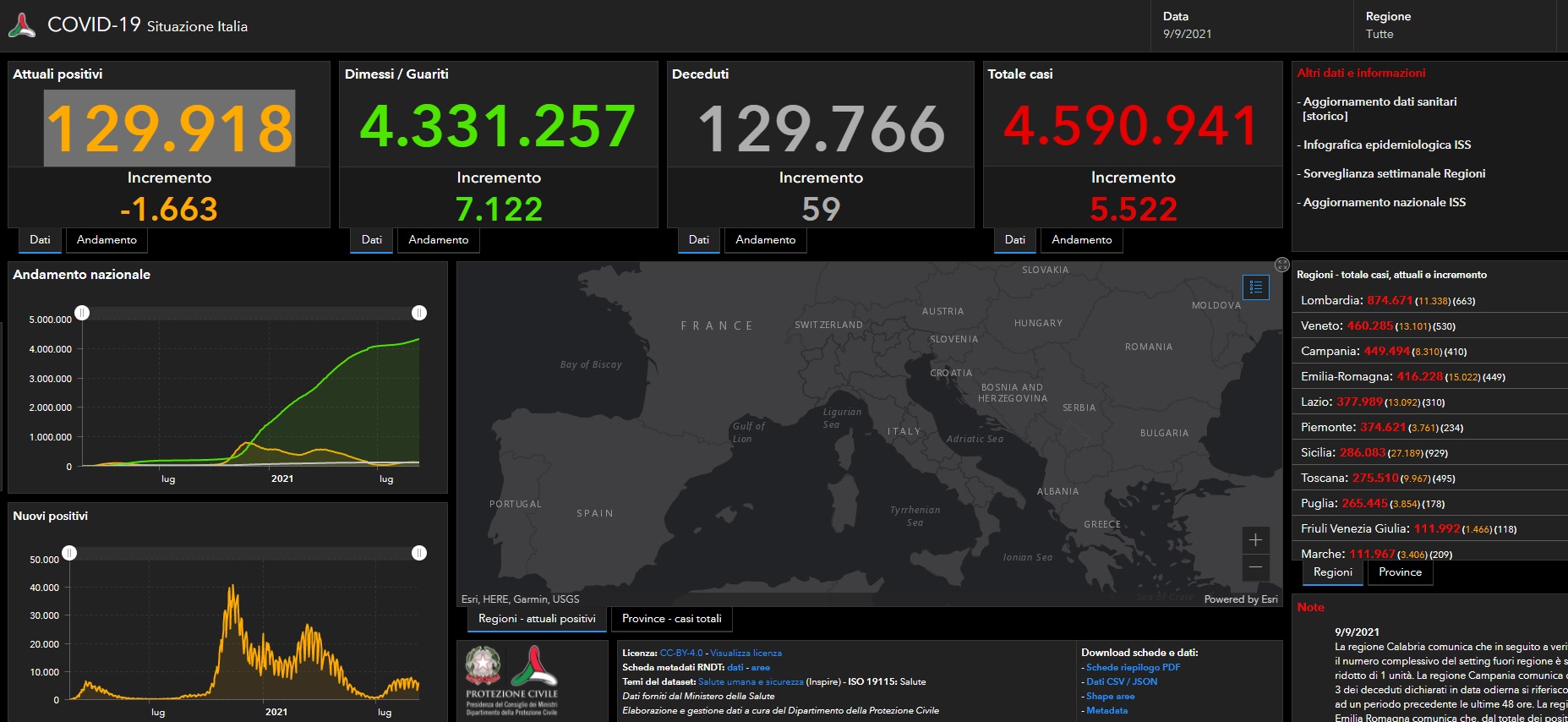 ROMA (ITALPRESS) – Lieve calo dei casi Covid in Italia. E’ quanto si evince dal bollettino del ministero della Salute, secondo il quale i nuovi positivi sono 5.522 (rispetto ai 5.923 delll’8 settembre). 59 i decessi (+ 10 rispetto alle 24 ore precedenti).7.122 i nuovi dimessi/guariti, che portano il totale a 4.331.257.Scende di 1.663 unità […]
