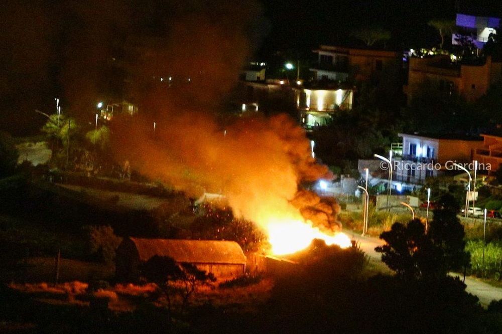 Le fiamme, si sono propagate rapidamente nei terreni circostanti pieni di sterpaglie minacciando le abitazioni limitrofe
