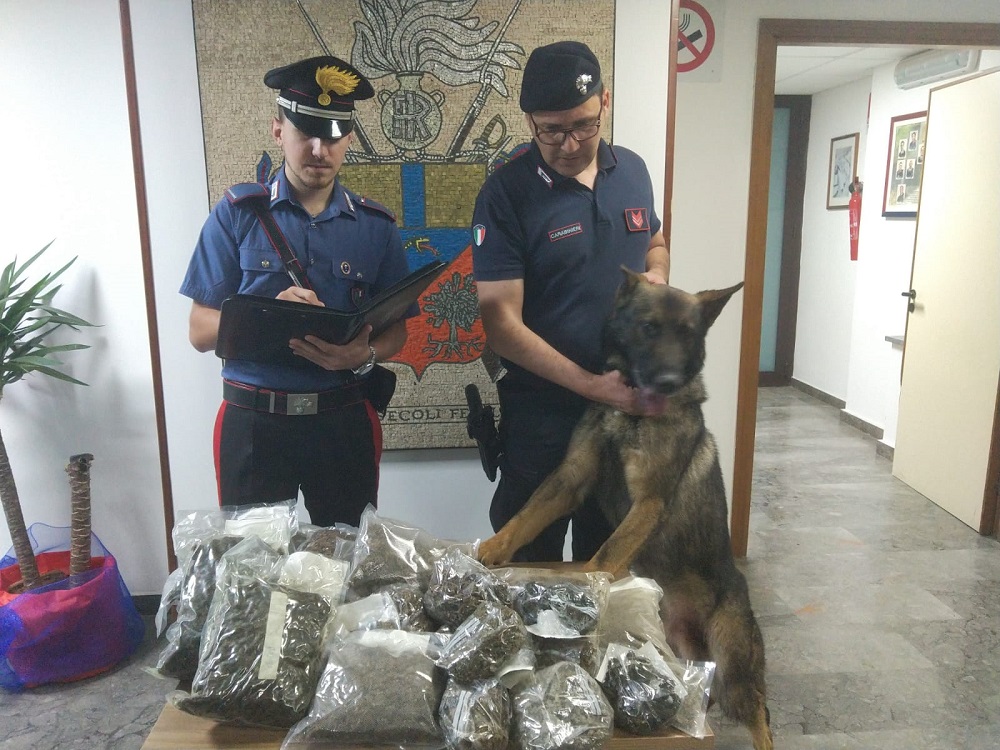 I carabinieri hanno anche scovato, grazie al fiuto di Ron, oltre 4,5 chili di marijuana custoditi all'interno di un garage