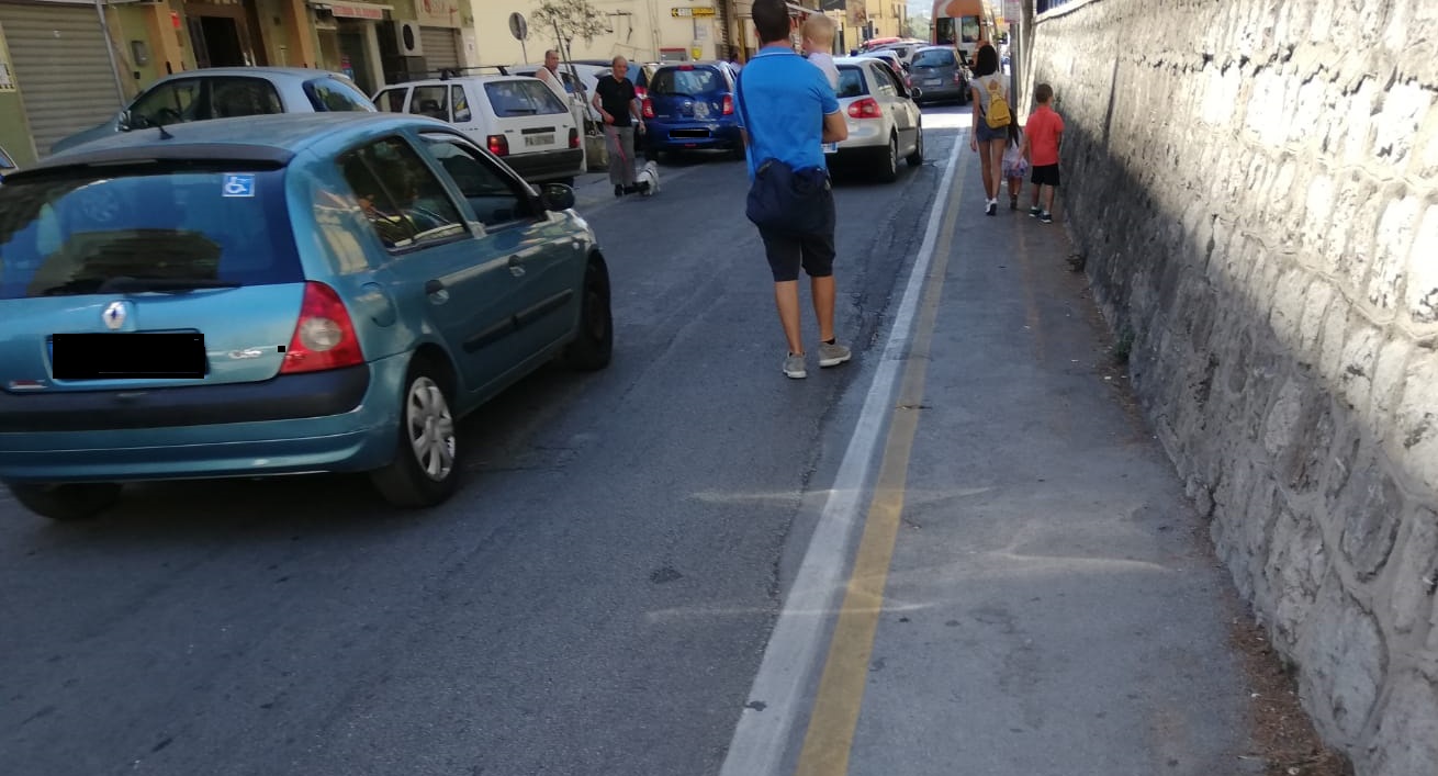 Il percorso, infatti, è sempre occupato dalle auto e per i pedoni comincia una pericolosa gimcana