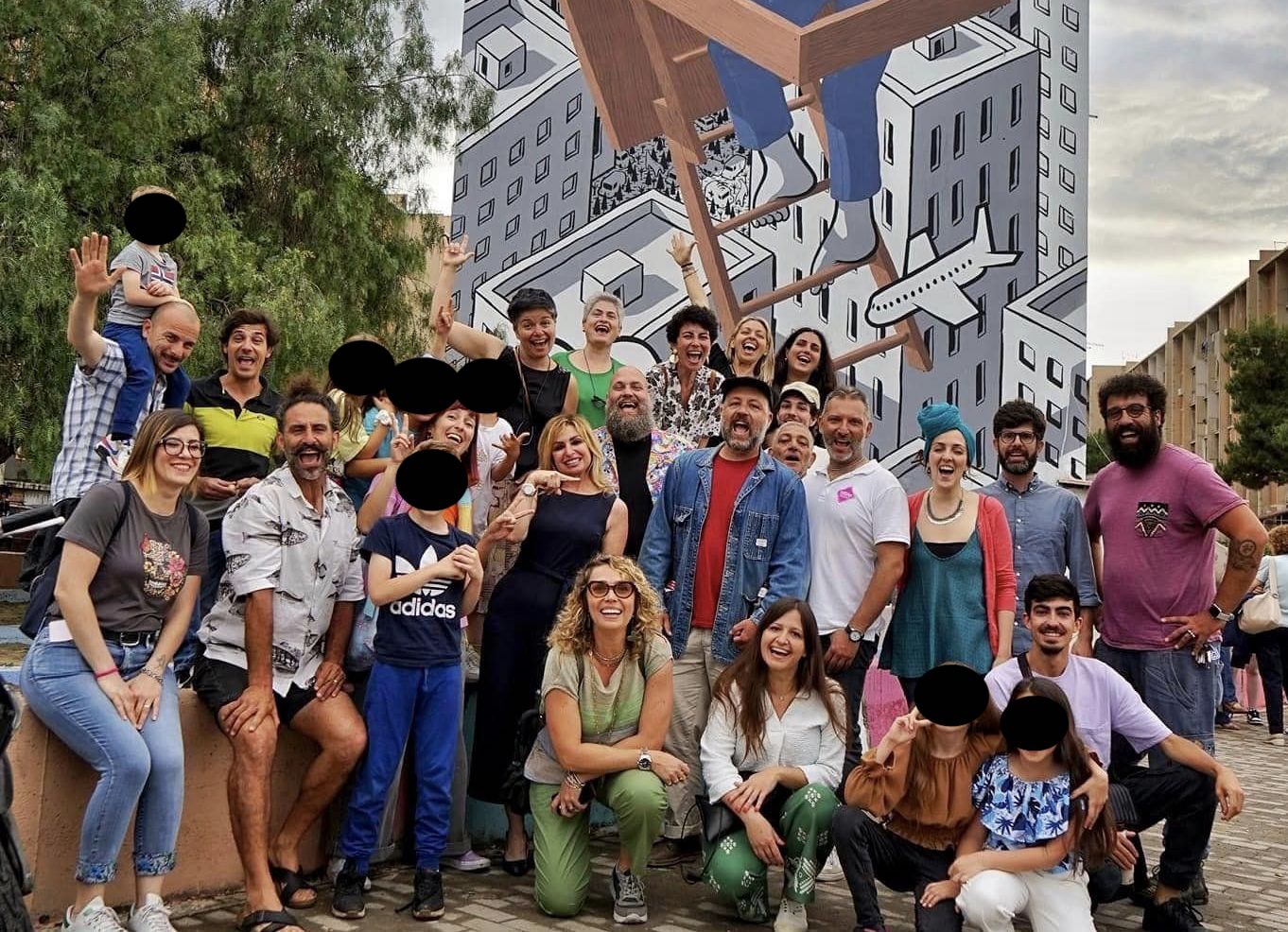 Sulla facciata del palazzo dipinti i volti degli attori palermitani Franco e Ciccio